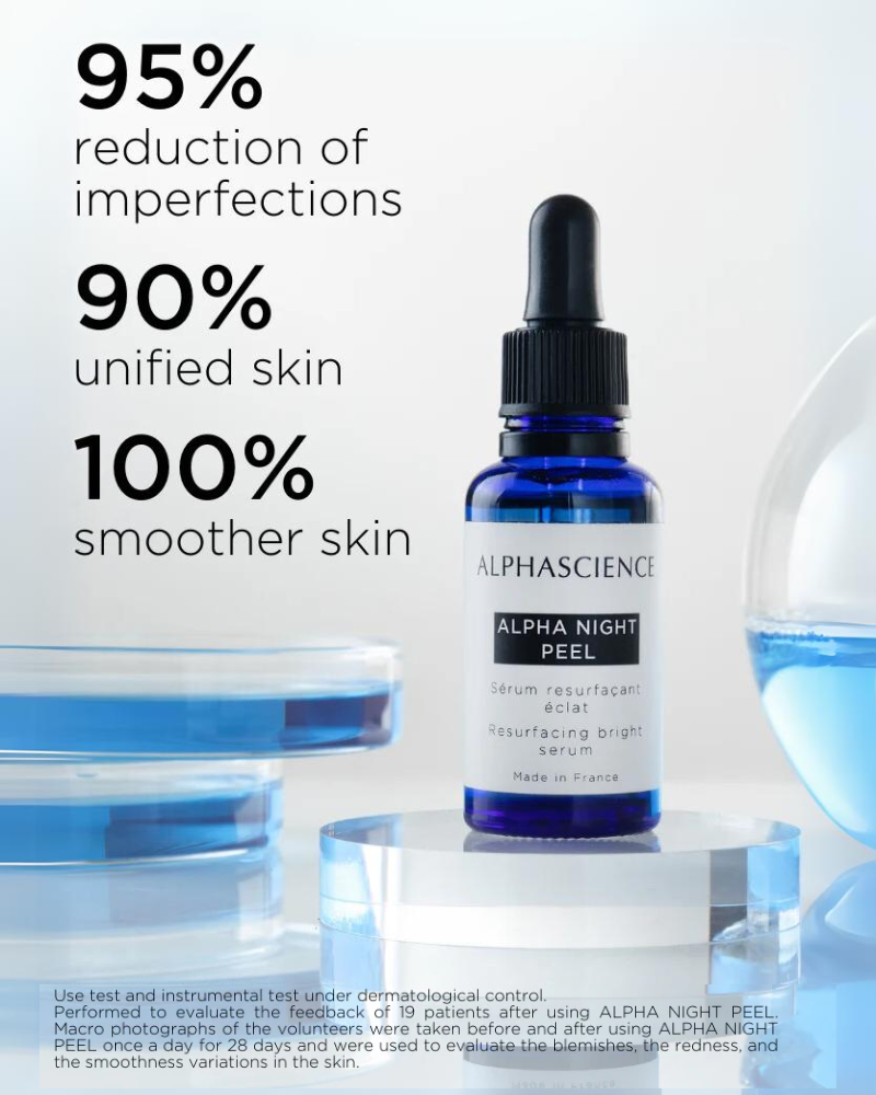 ALPHA NIGHT PEEL prevents, smoothes and acts on persistent signs of aging. It fights against external factors such as pollution and free radicals.