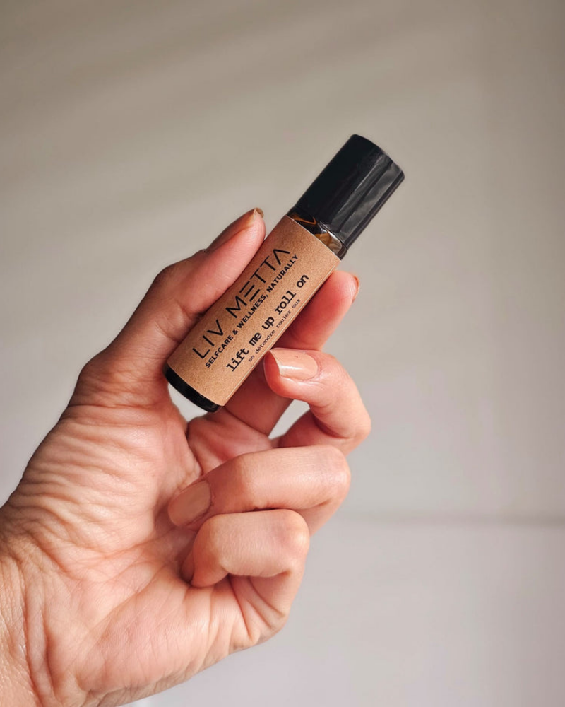 Lift Me Up Roll On: Unwind and discover tranquility that enhances peace in challenging moments. Whether it's daytime or evening, this blend is ideal for restoring a grounded and present state of being.